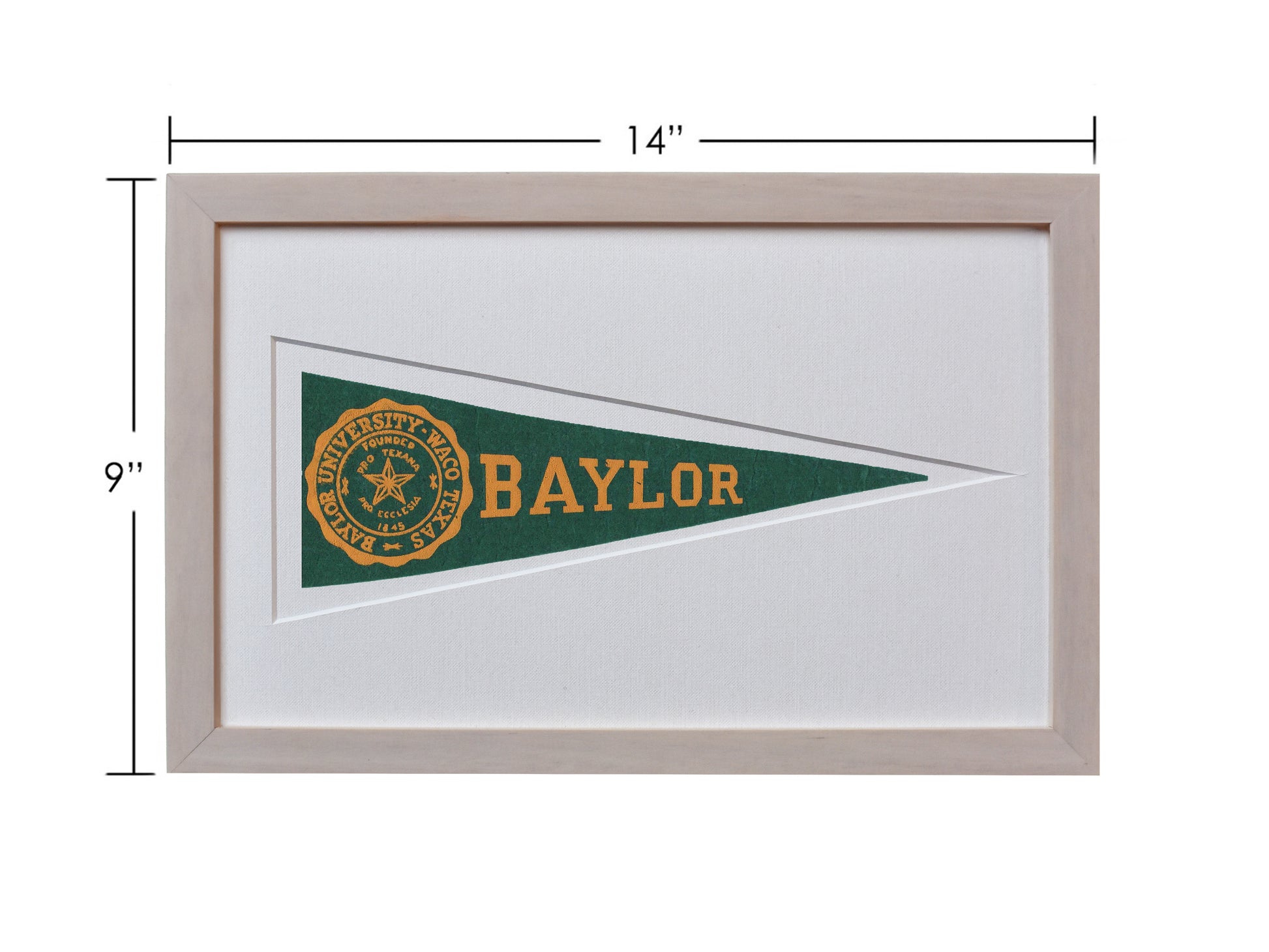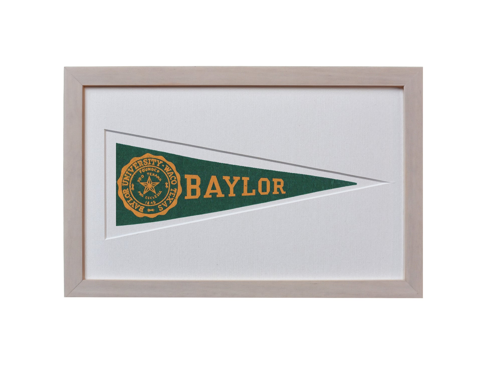 A rare piece of vintage Baylor history from the 1950s available in your choice of a Black, Light Wood, or Mahogany frame. Framed in U/V glass and cut mat with the history of Hormel Pennants on the back.
