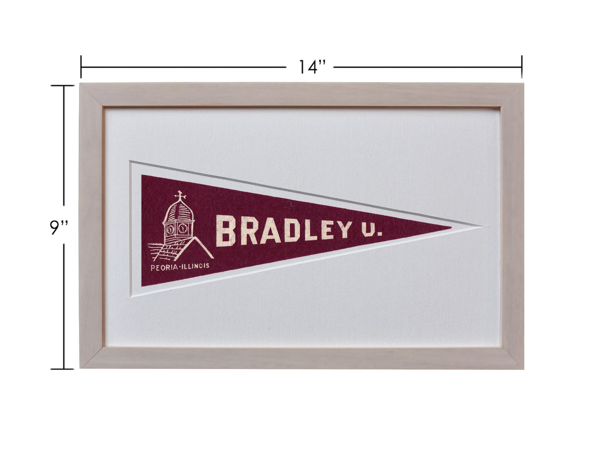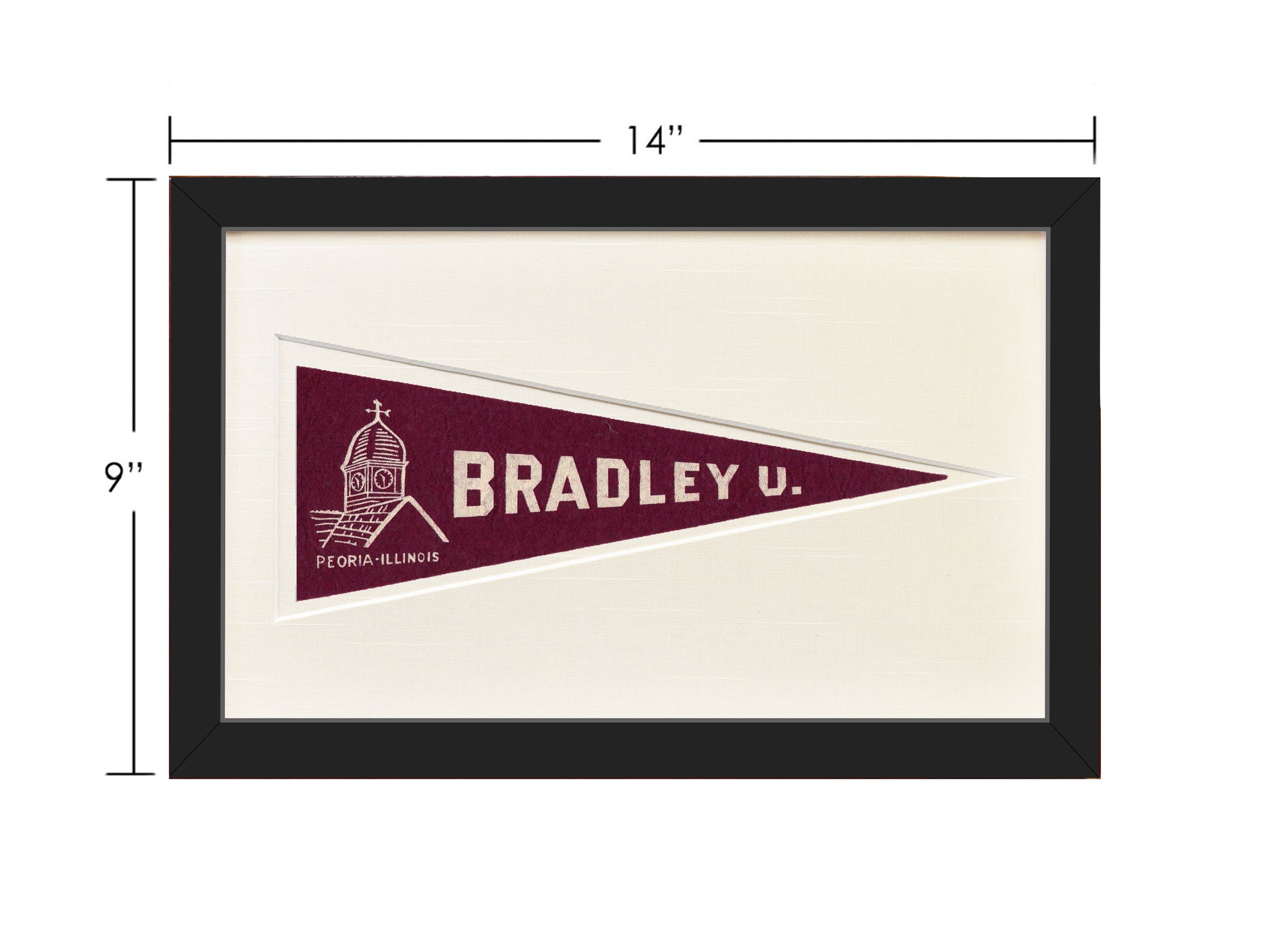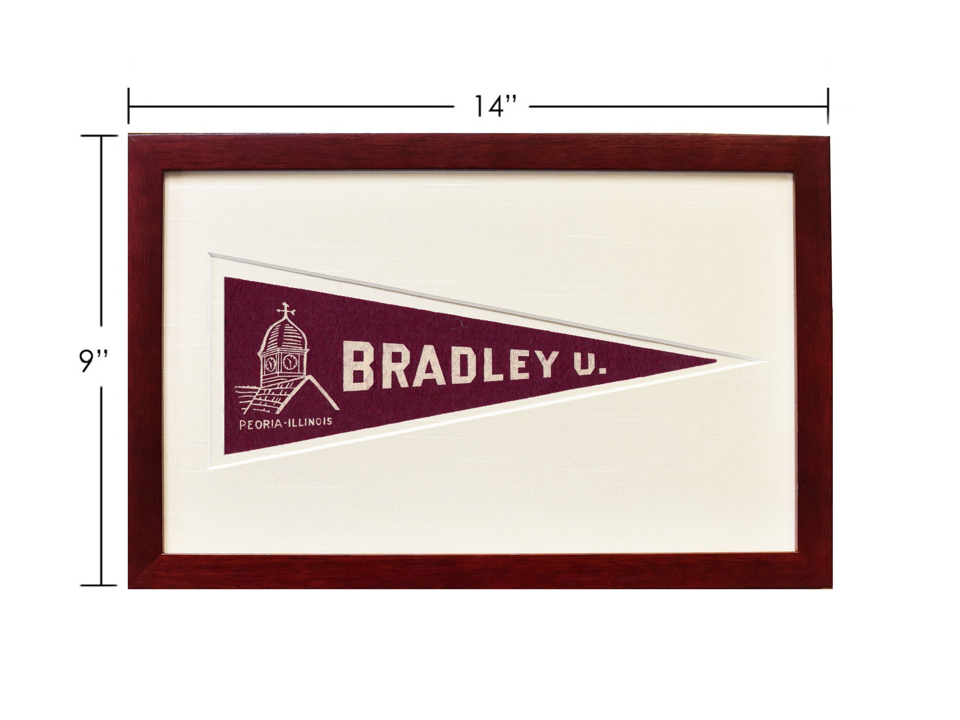 A rare piece of vintage Bradley University history from the 1950s available in your choice of a Black, Light Wood, or Mahogany frame. Framed in U/V glass and cut mat with the history of Hormel Pennants on the back.