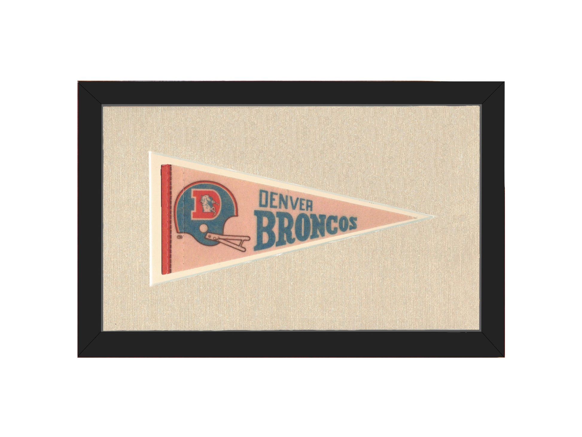 A rare piece of vintage Denver Broncos history from the 1950s available in your choice of Black or Mahogany frame. Framed in U/V glass and cut mat.