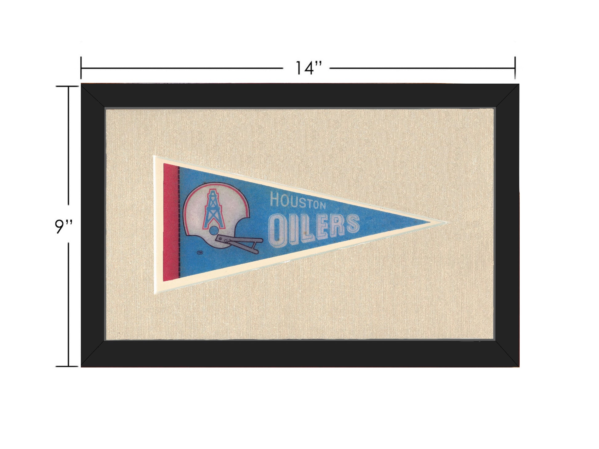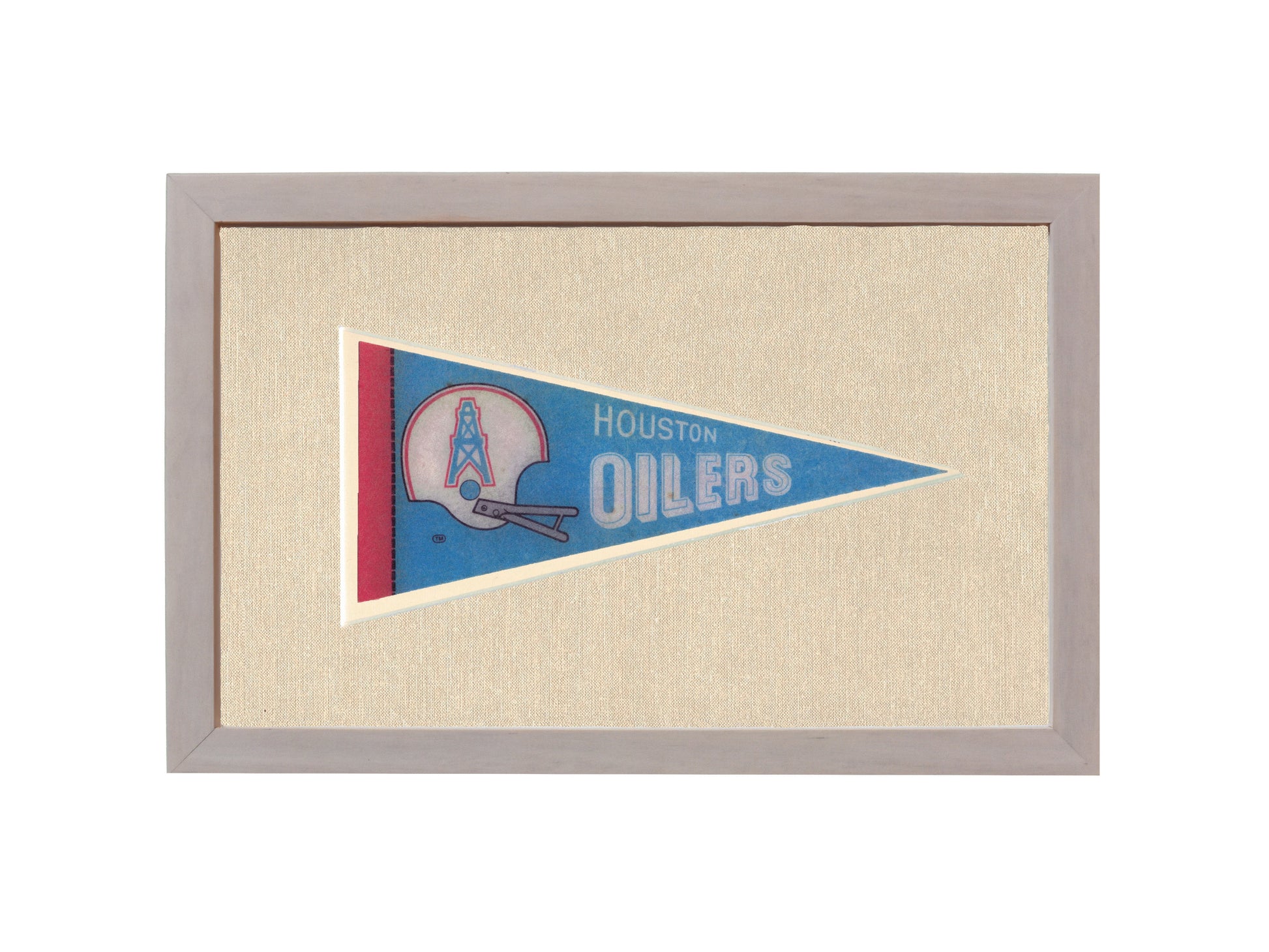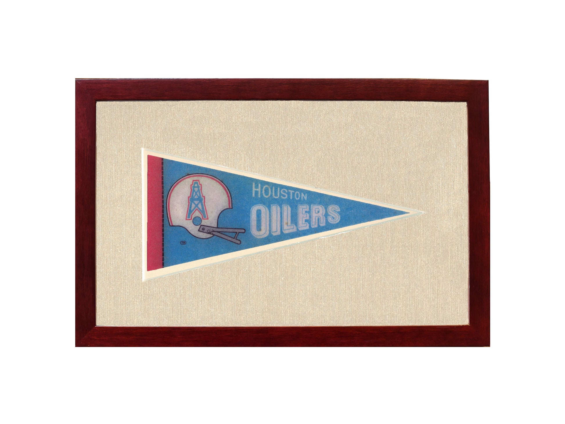 Beautiful framed vintage Houston Oilers pennant. A rare piece that makes the perfect gift for any fan or collector of Houston Oilers memorabilia. Framed in U/V glass and cut mat.