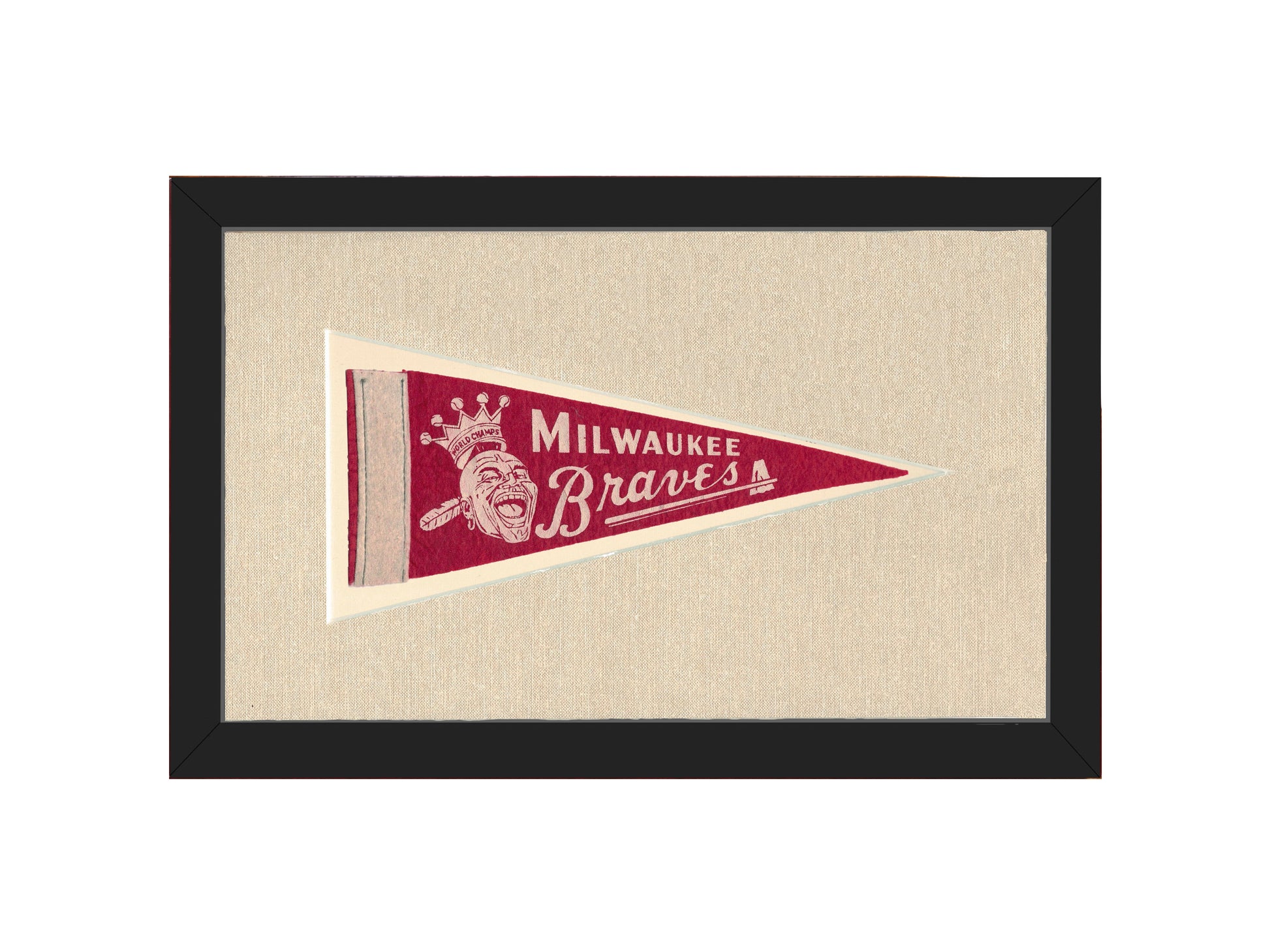 A rare piece of vintage Milwaukee Braves history from the 1950s available in your choice of Black or Mahogany frame. Framed in U/V glass and cut mat.