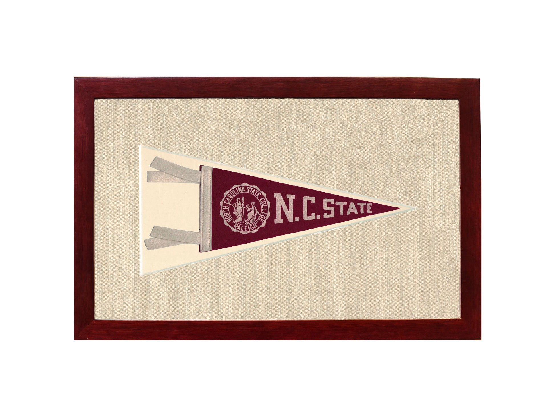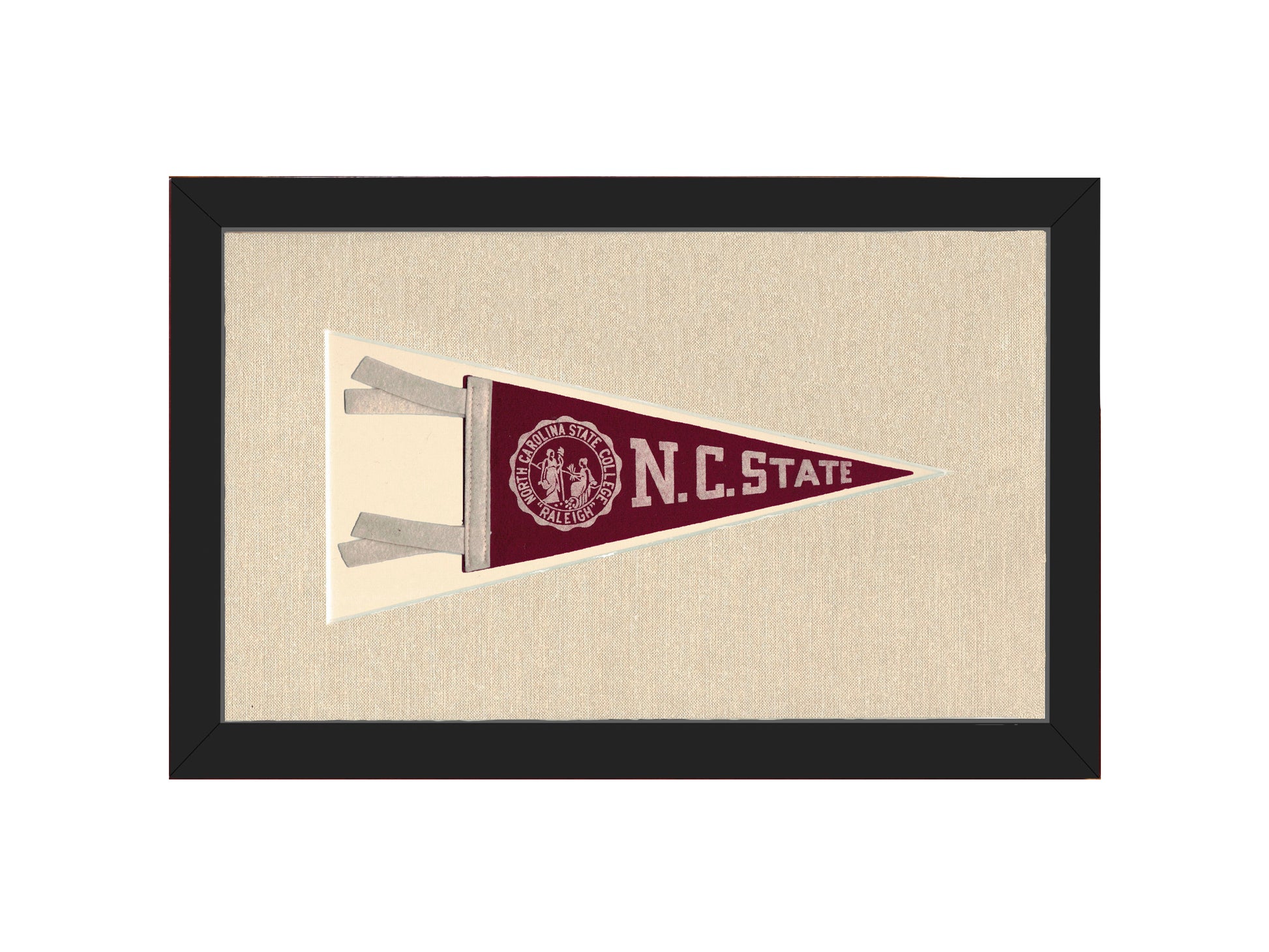 A rare piece of vintage NC State college history from the 1950s available in your choice of Black or Mahogany frame. Framed in U/V glass and cut mat.