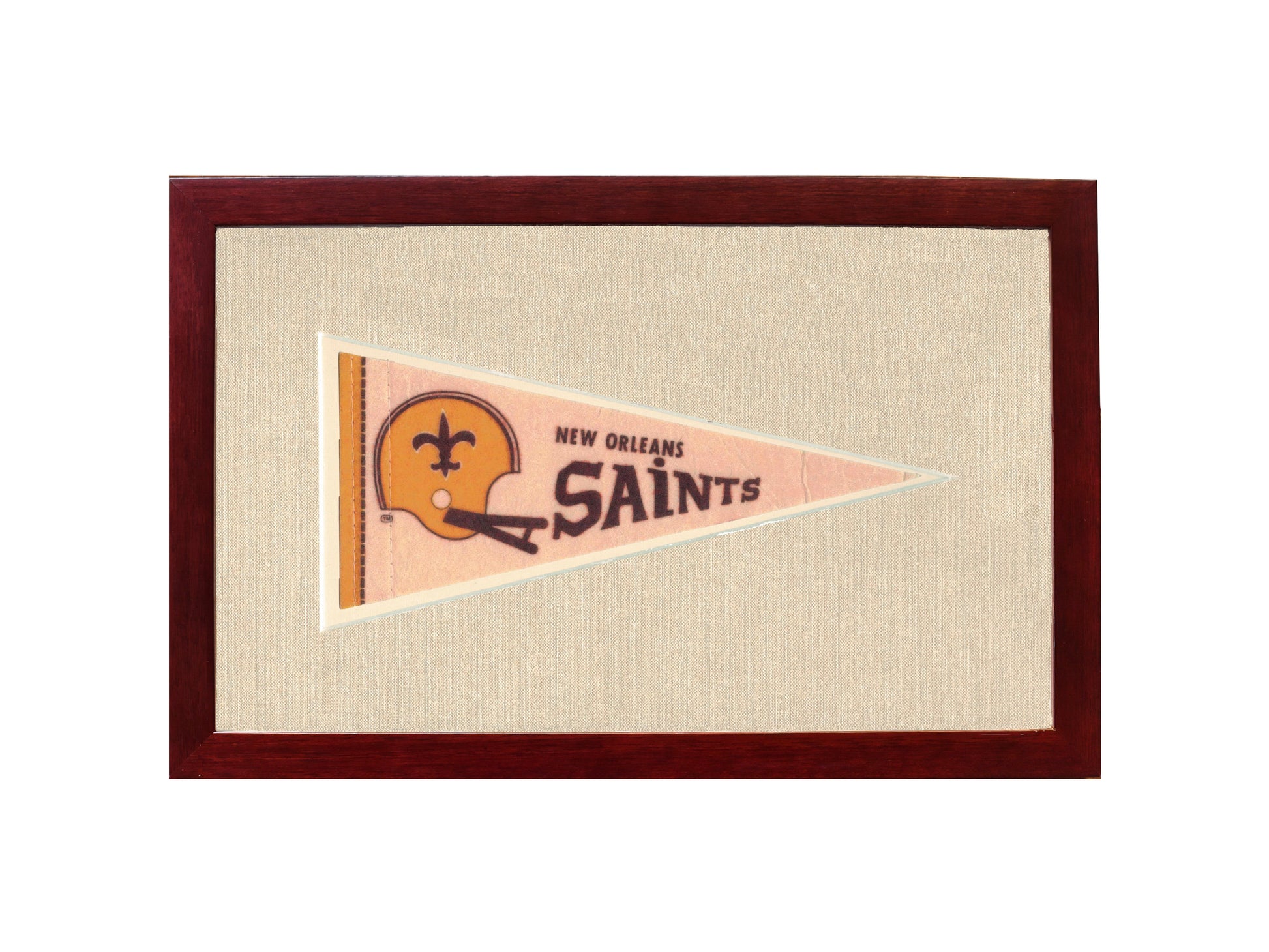 A rare piece of vintage New Orleans Saints history from the 1950s available in your choice of Black or Mahogany frame. Framed in U/V glass and cut mat.