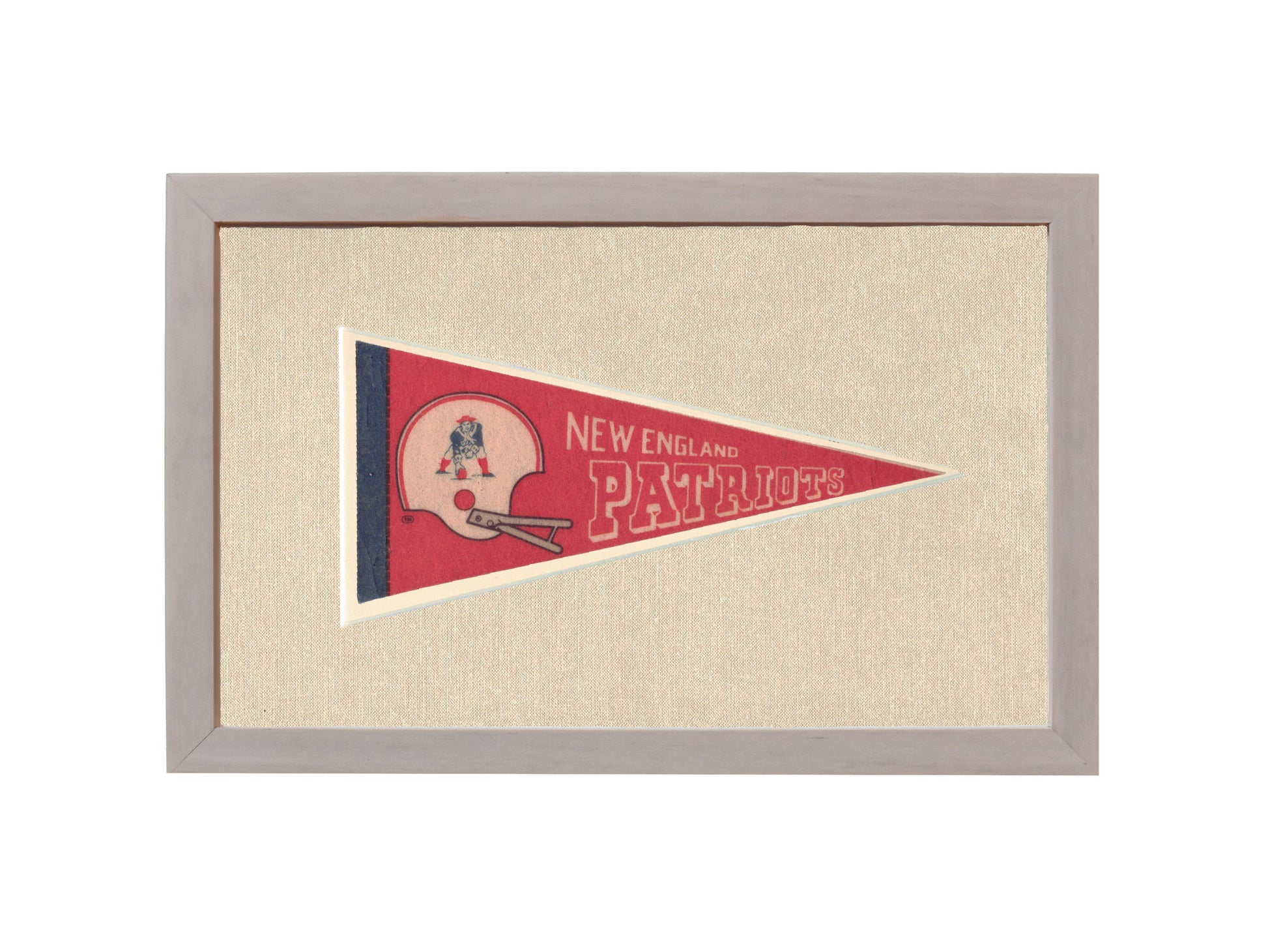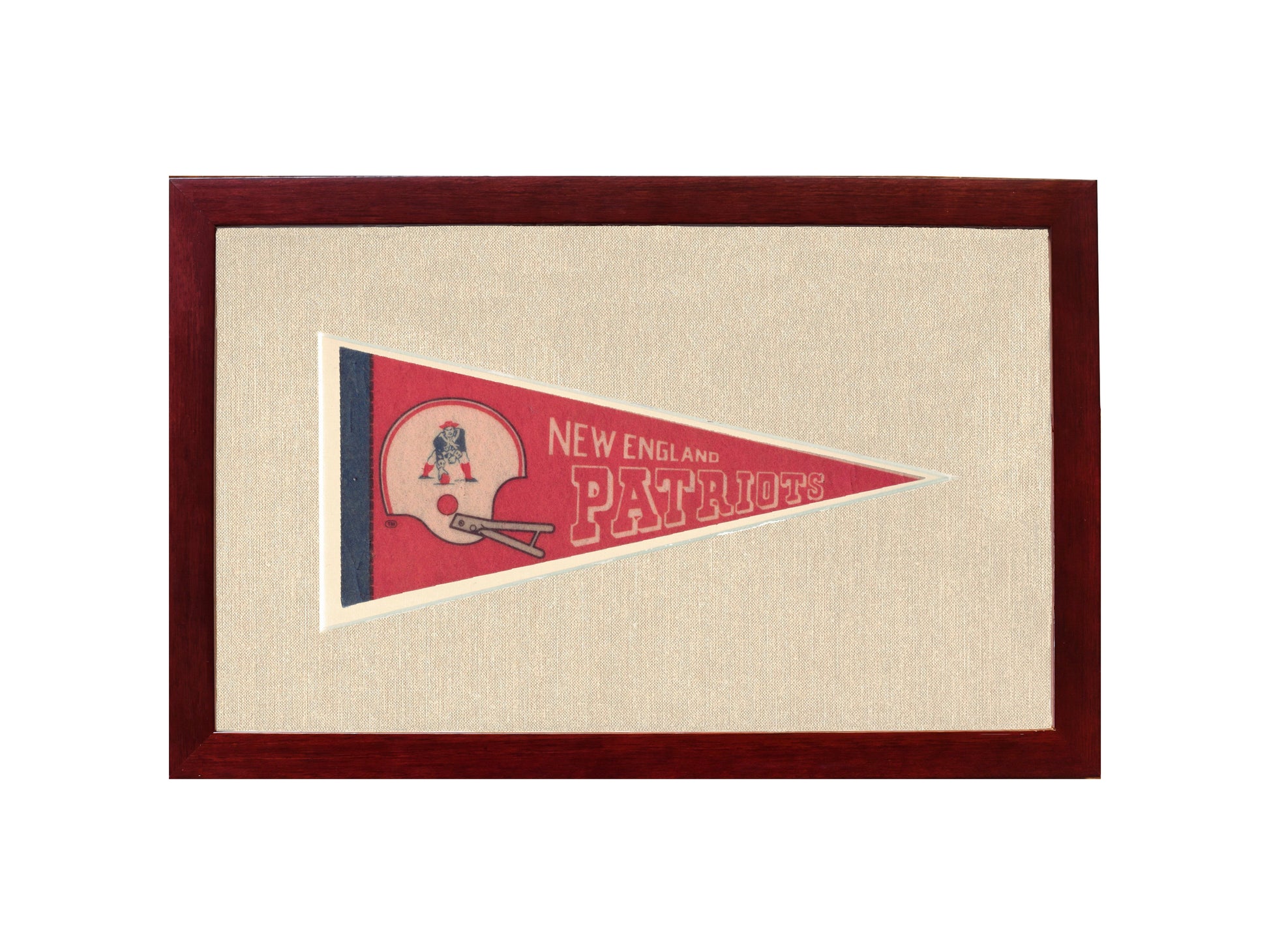 Beautiful framed vintage New England Patriots pennant. A rare piece that makes the perfect gift for any fan or collector of Patriots memorabilia. Framed in U/V glass and cut mat.