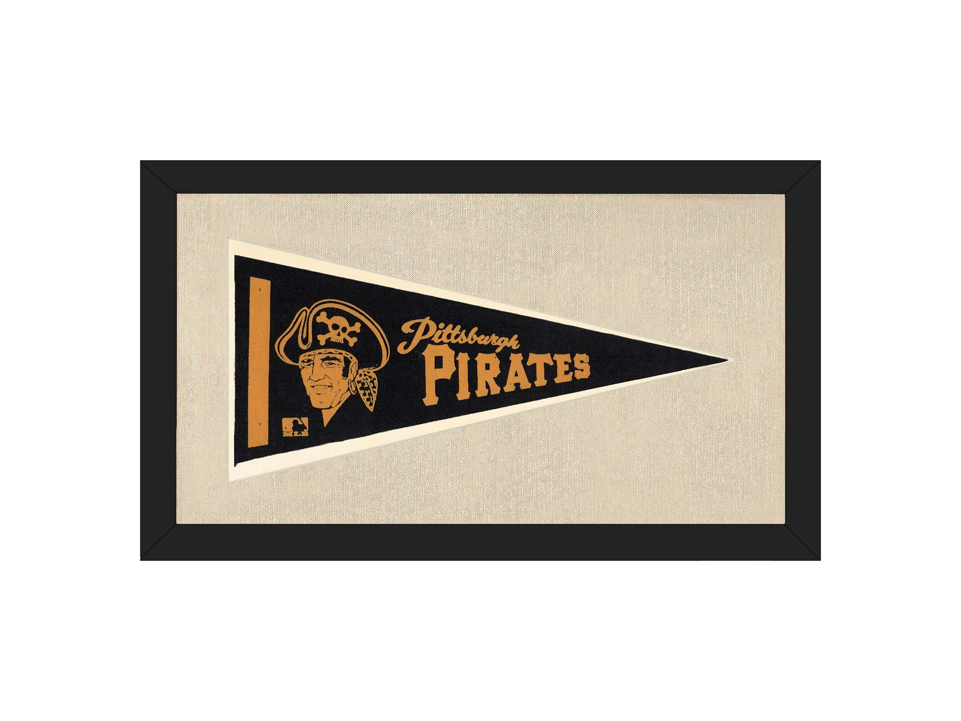 Beautiful framed vintage Pittsburgh Pirates pennant from the 1970s. A rare piece that makes the perfect gift for any fan or collector of Pirates memorabilia. Framed in U/V glass and cut mat.