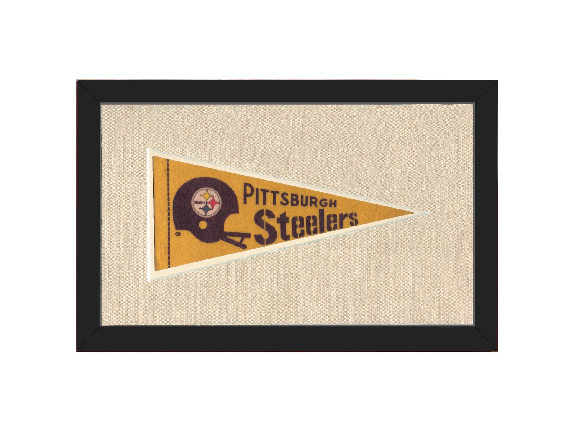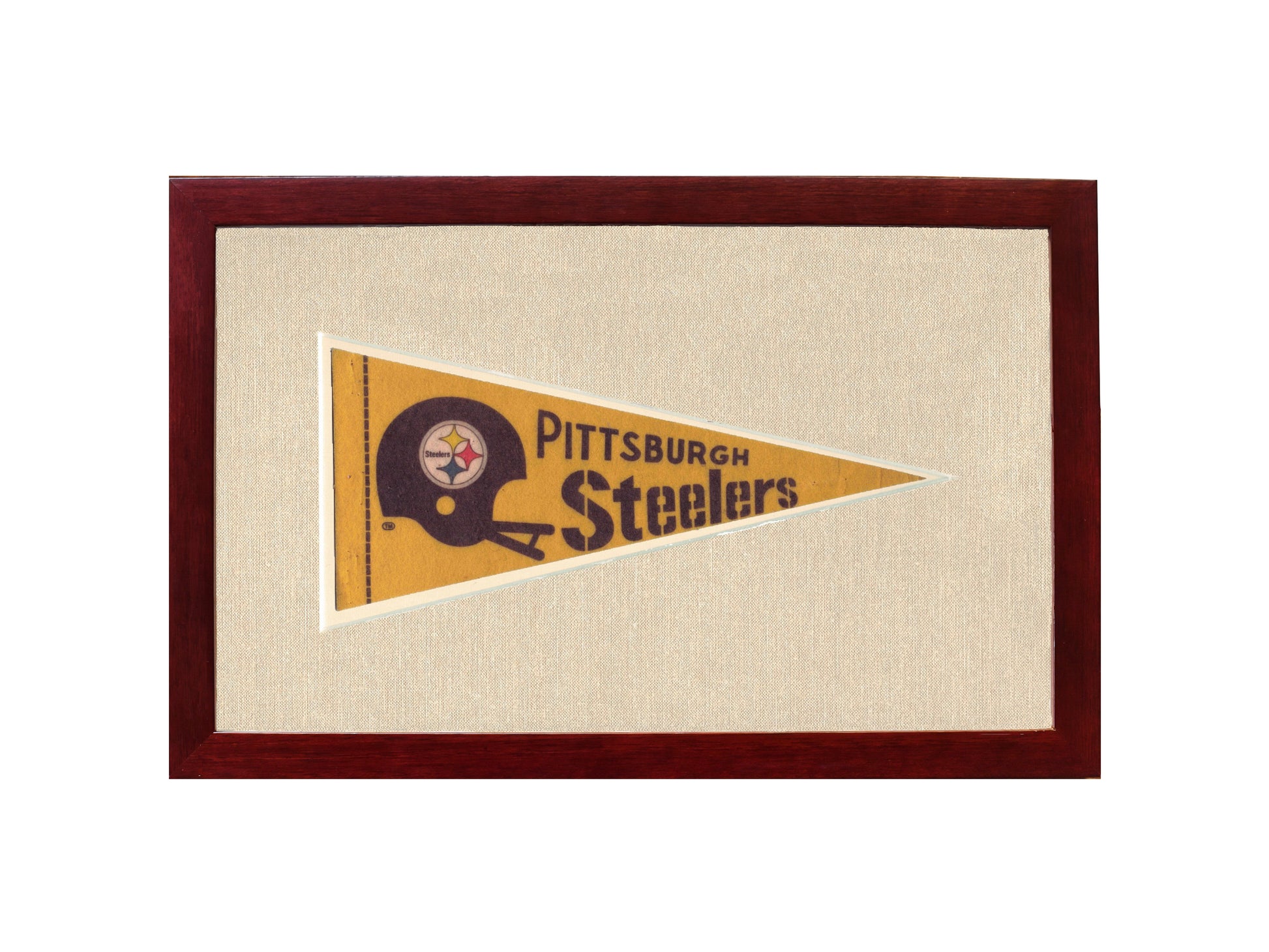 Beautiful framed vintage Pittsburgh Steelers pennant. A rare piece that makes the perfect gift for any fan or collector of Pittsburgh Steelers memorabilia. Framed in U/V glass and cut mat.