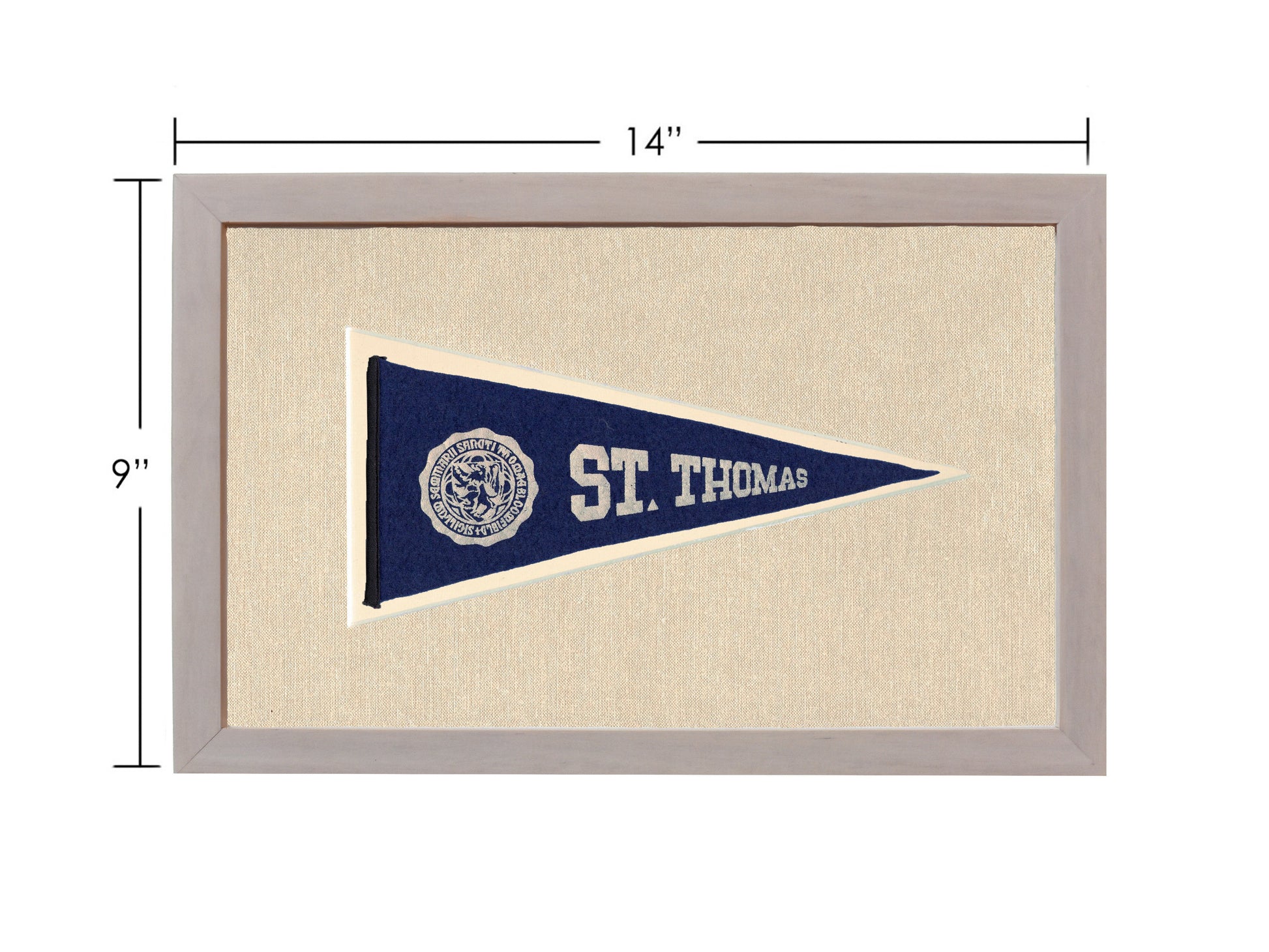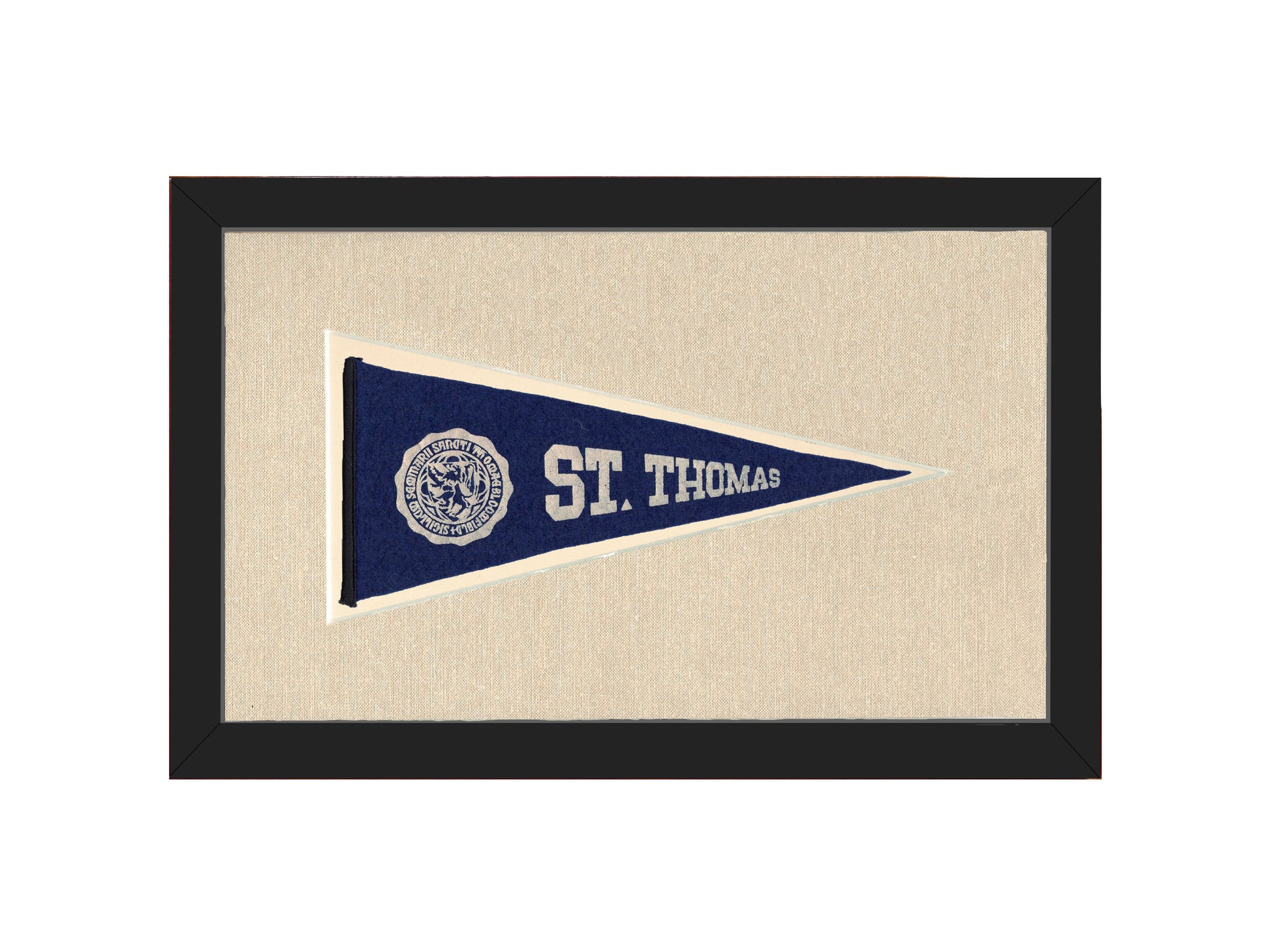 A rare piece of vintage St. Thomas university history from the 1950s available in your choice of Black or Mahogany frame. Framed in U/V glass and cut mat.