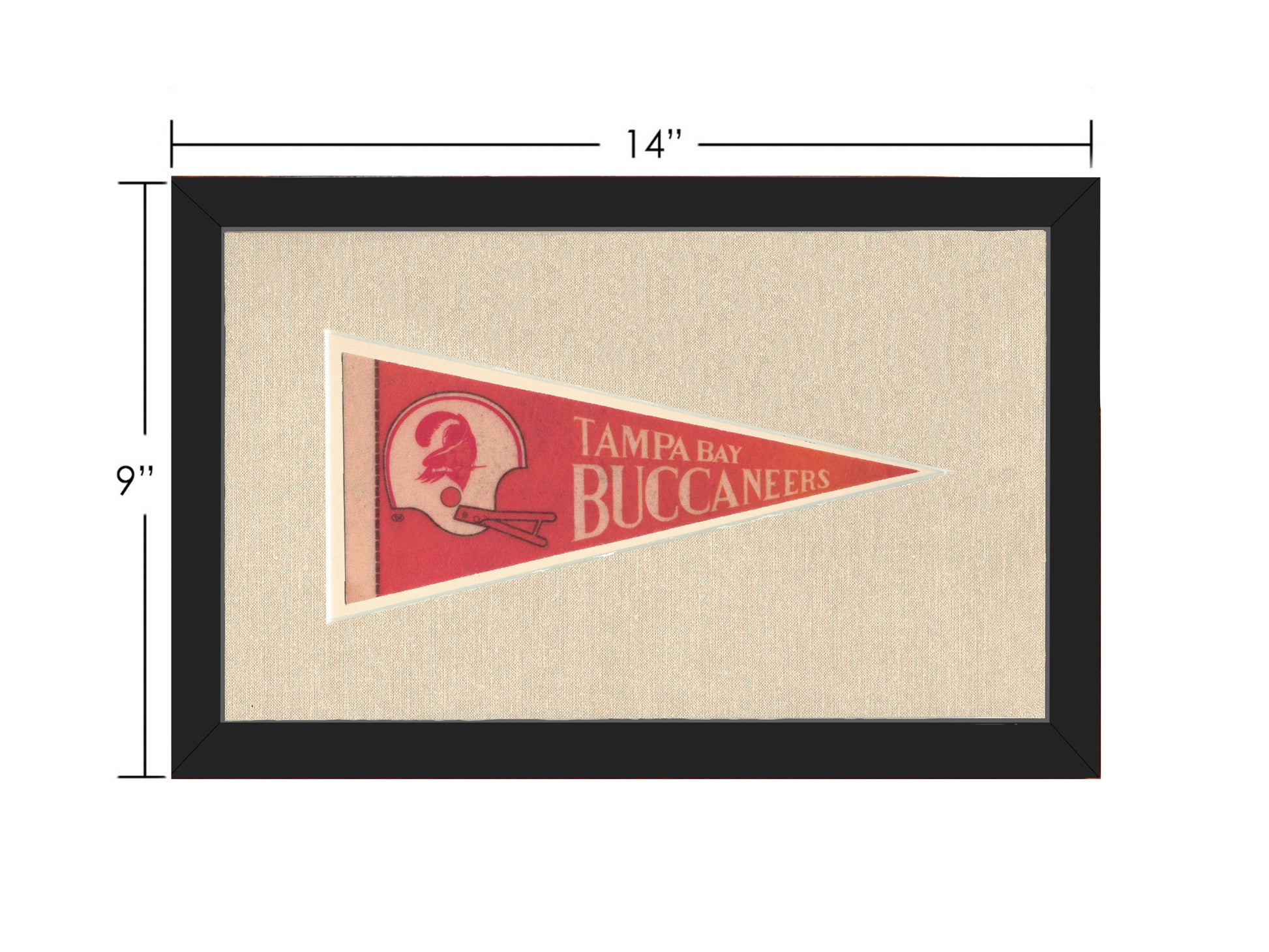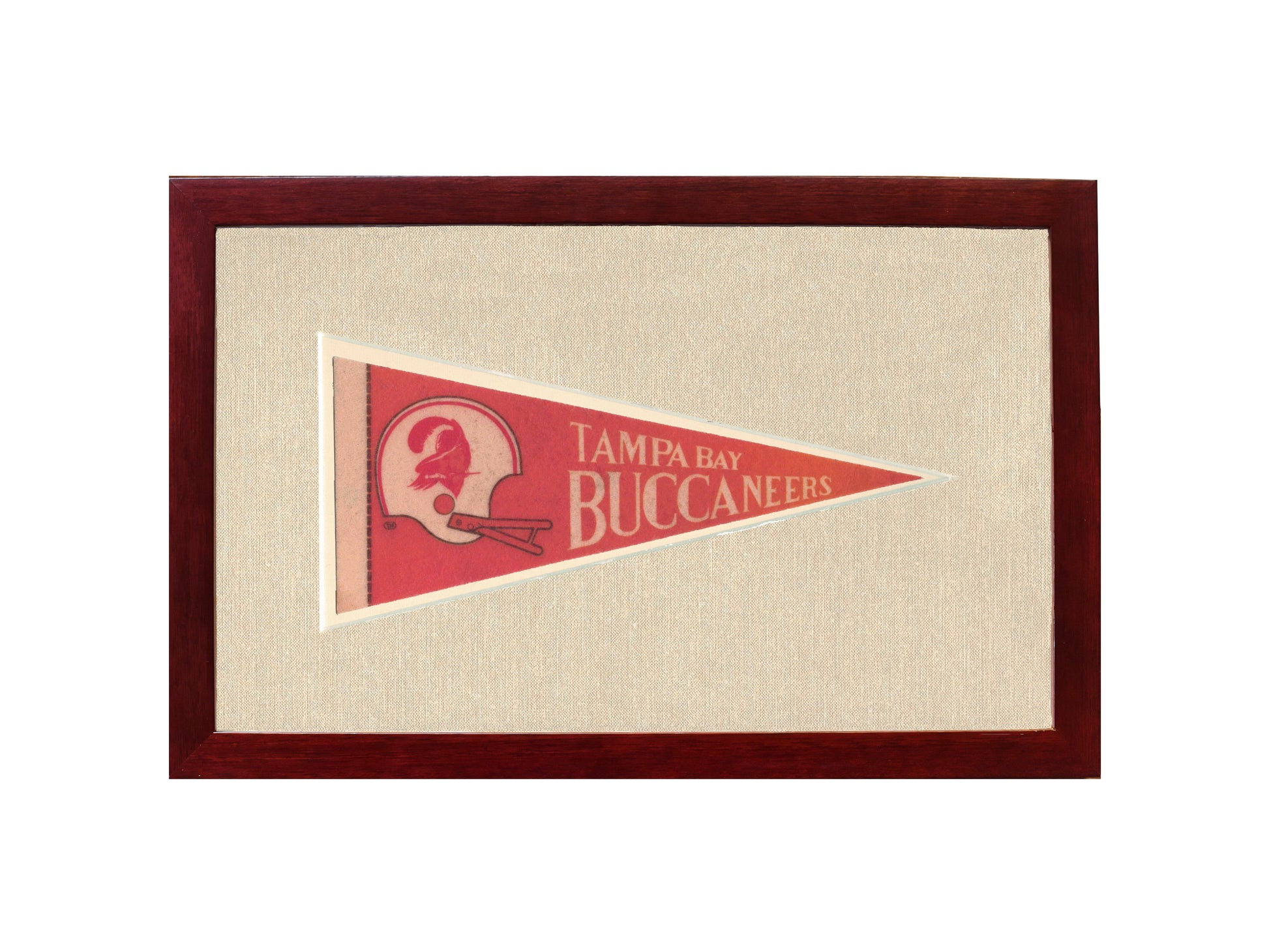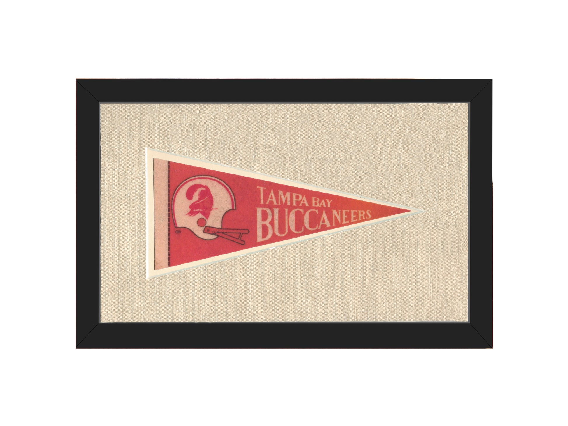 Beautiful framed vintage Tampa Bay Buccaneers pennant. A rare piece that makes the perfect gift for any fan or collector of Tampa Bay Buccaneers memorabilia. Framed in U/V glass and cut mat.