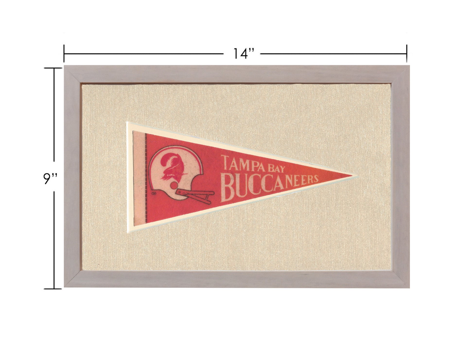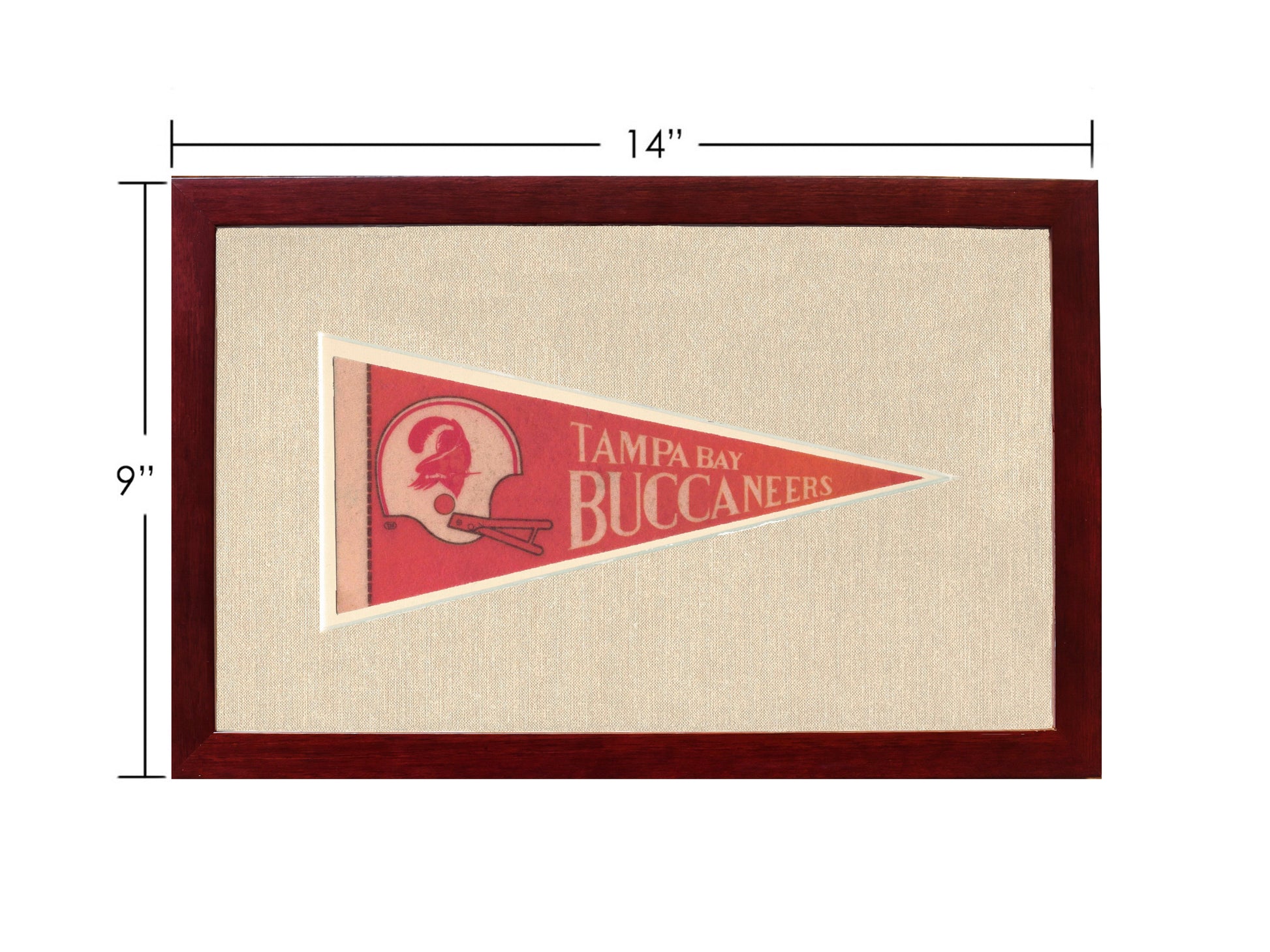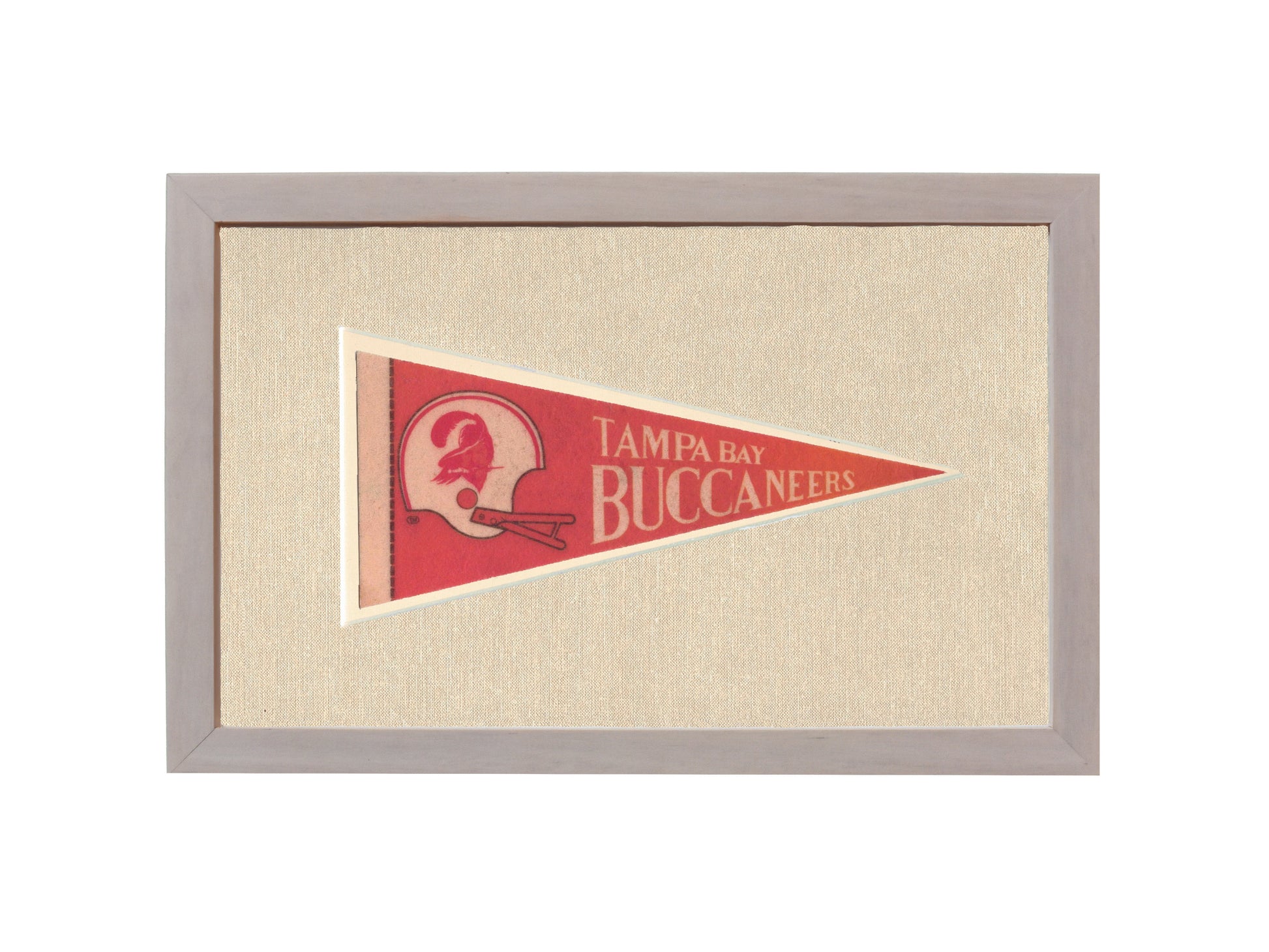 Beautiful framed vintage Tampa Bay Buccaneers pennant. A rare piece that makes the perfect gift for any fan or collector of Tampa Bay Buccaneers memorabilia. Framed in U/V glass and cut mat.