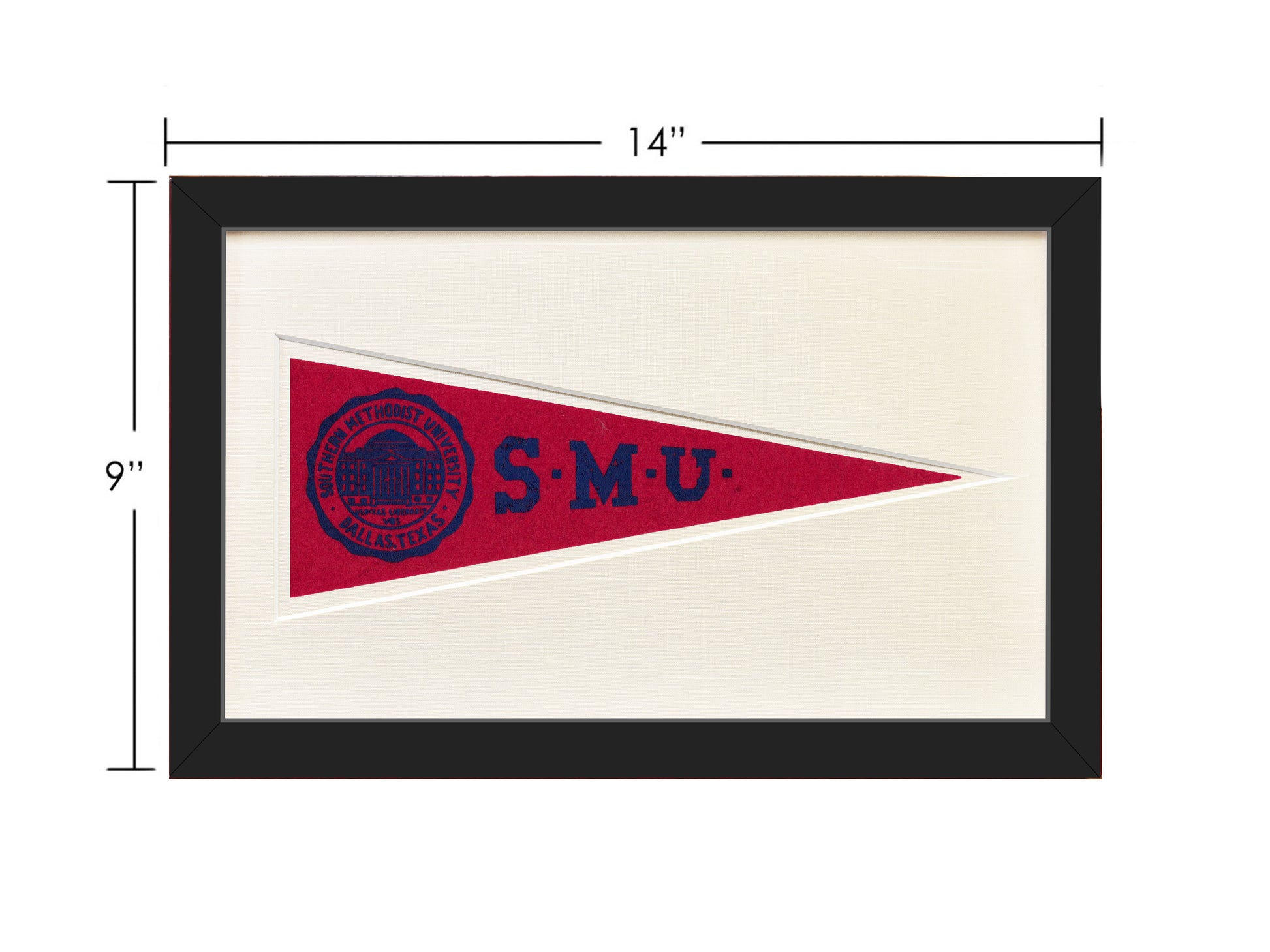 A rare piece of vintage Southern Methodist University history from the 1950s available in your choice of a Black, Light Wood, or Mahogany frame. Framed in U/V glass and cut mat with the history of Hormel Pennants on the back.