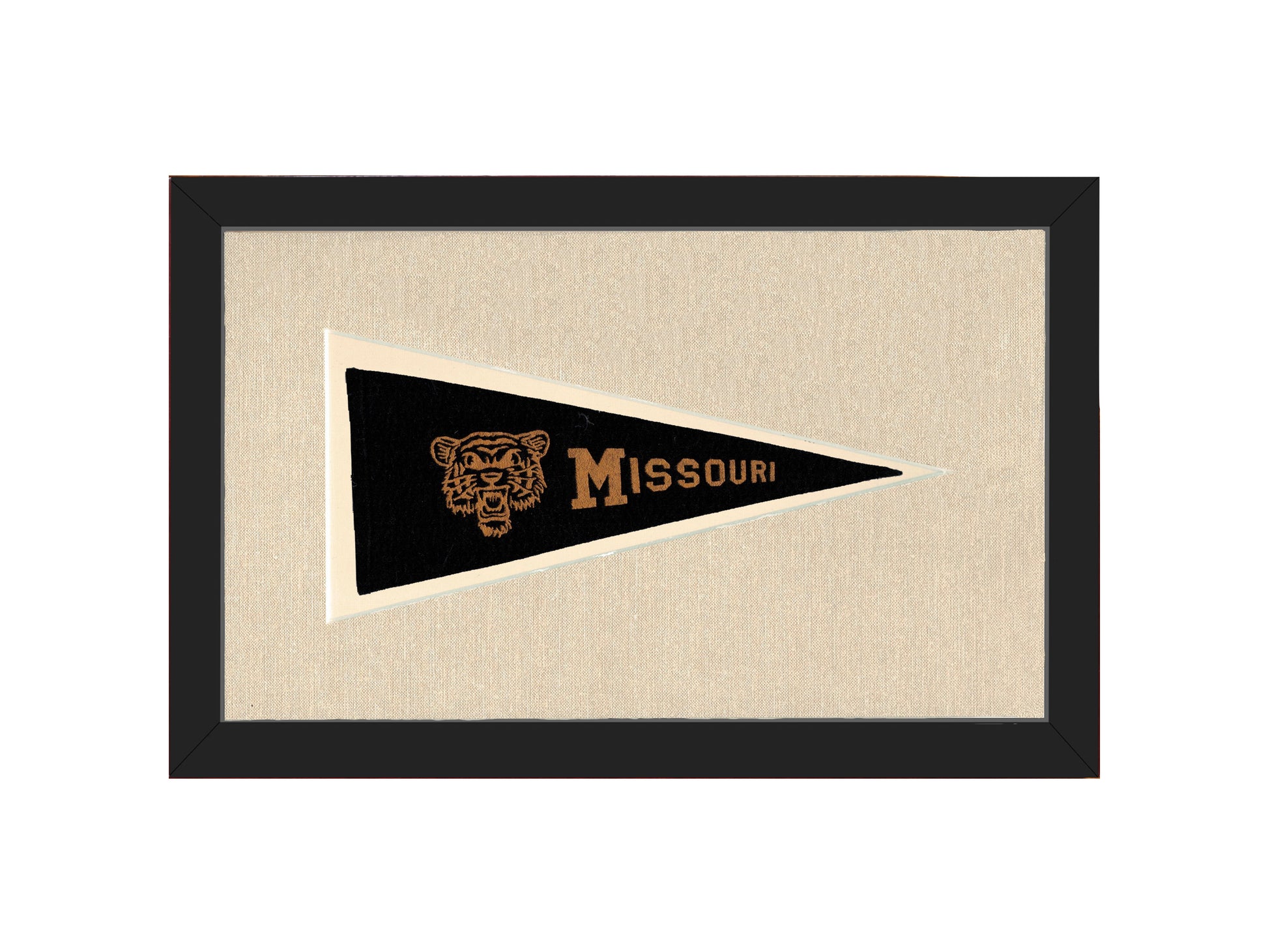 A rare piece of vintage University of Missouri history from the 1950s available in your choice of Black or Mahogany frame. Framed in U/V glass and cut mat.