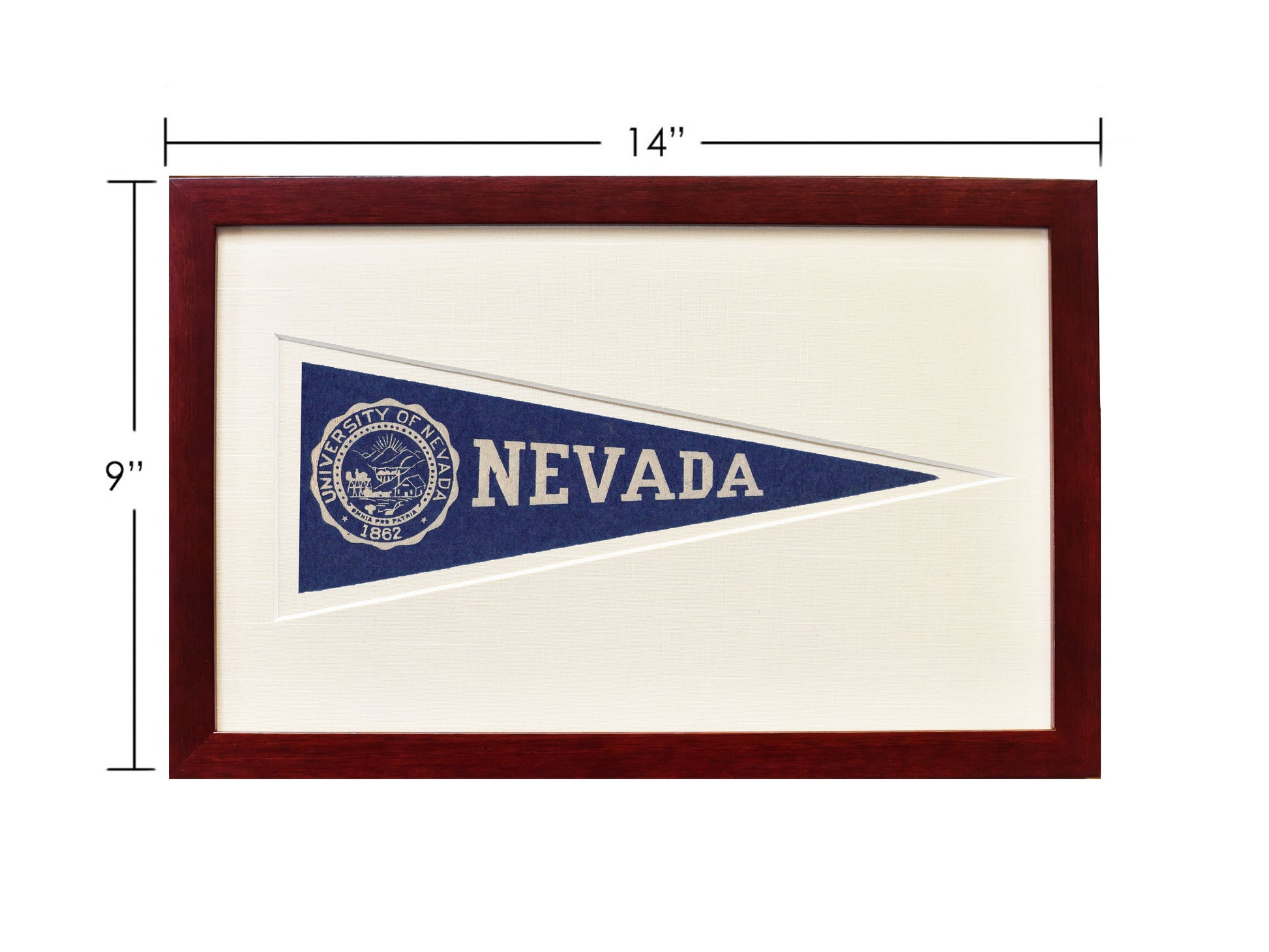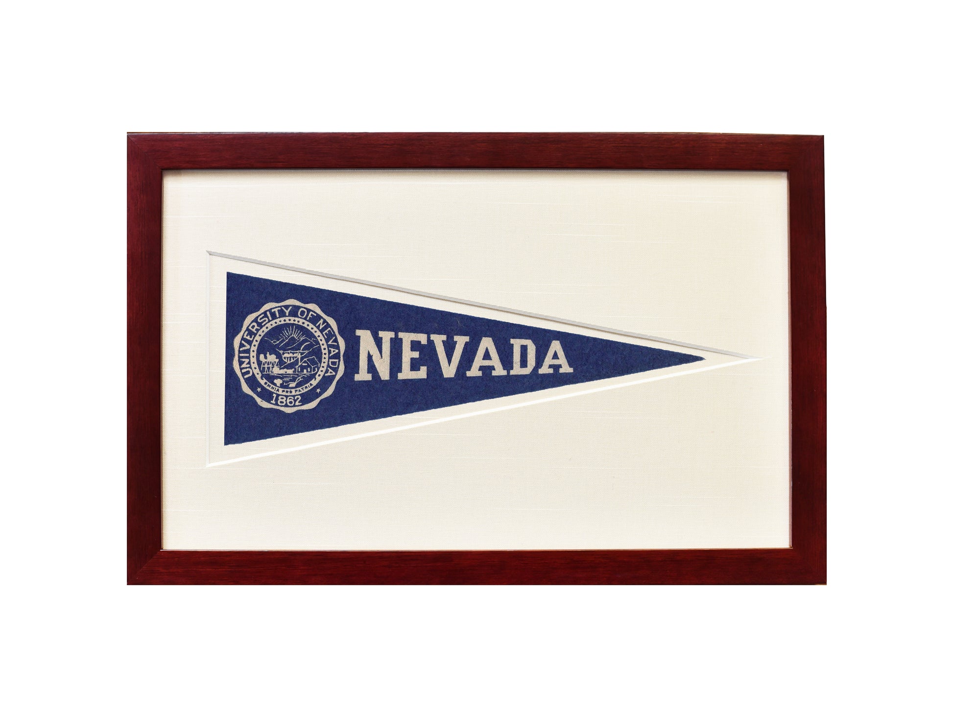 A rare piece of vintage Nevada history from the 1950s available in your choice of a Black, Light Wood, or Mahogany frame. Framed in U/V glass and cut mat with the history of Hormel Pennants on the back.